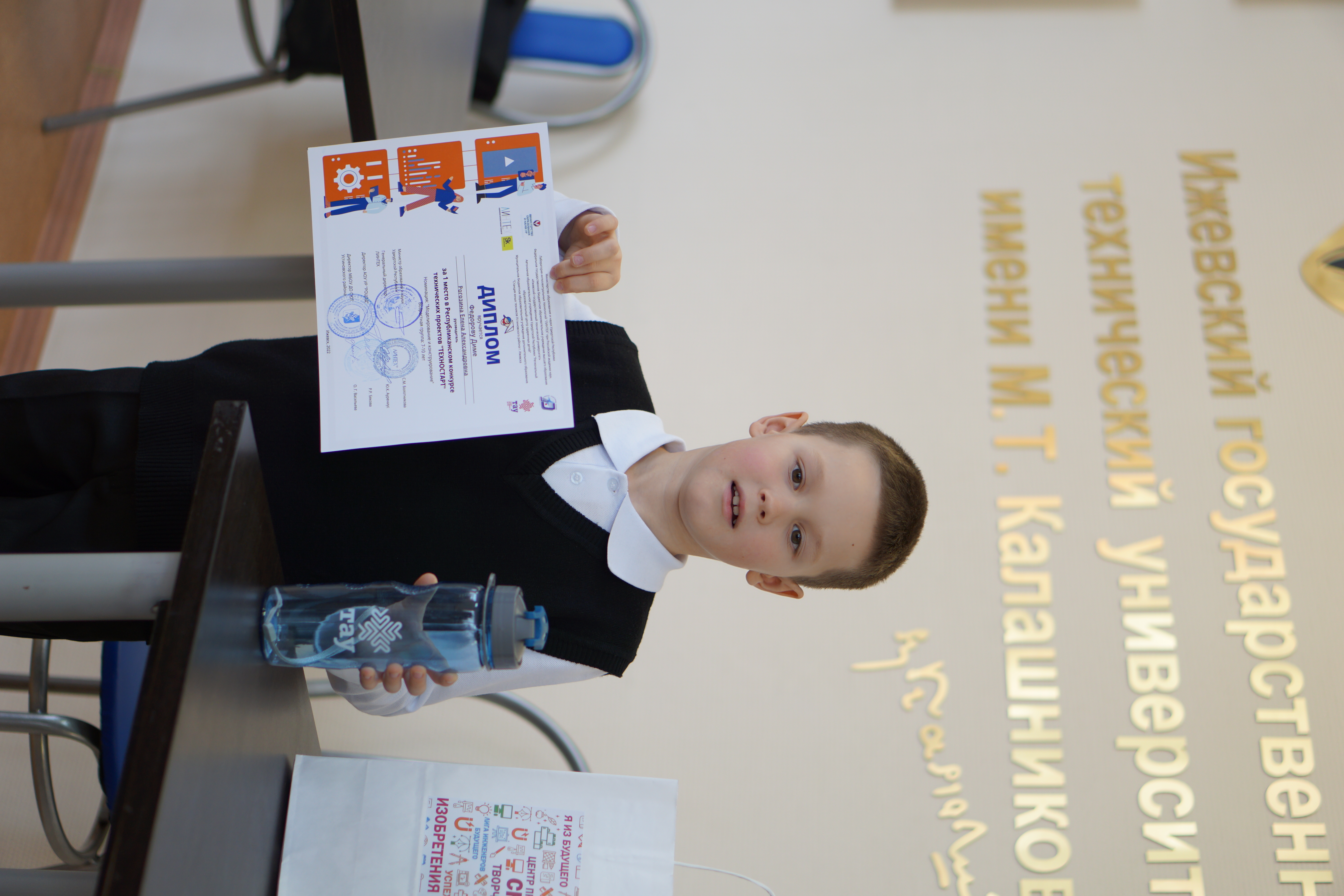 Администрация МБОУ ДО СЮТ Устиновского района выражает благодарность Александру Викторовичу Губерту, исполняющему обязанности ректора ФГБОУ ВО «Ижевский государственный технический университет имени М.Т. Калашникова», Пигалеву Сергею Александровичу, директору Бизнес-инкубатора ИжГТУ имени М.Т. Калашникова, Директору студенческого центра «Интеграл» Белицкому Александру Андреевичу за помощь в организации и проведении республиканского конкурса технических проектов «Техностарт». А также СЮТ выражает благодарность всем руководителям образовательных учреждений, за поддержку своих педагогов и организацию участия обучающихся в конкурсе технических проектов.