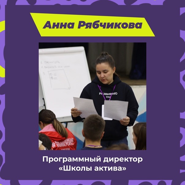 Хотим тебе представить программного директора «Школы актива» — Анну Рябчикову: